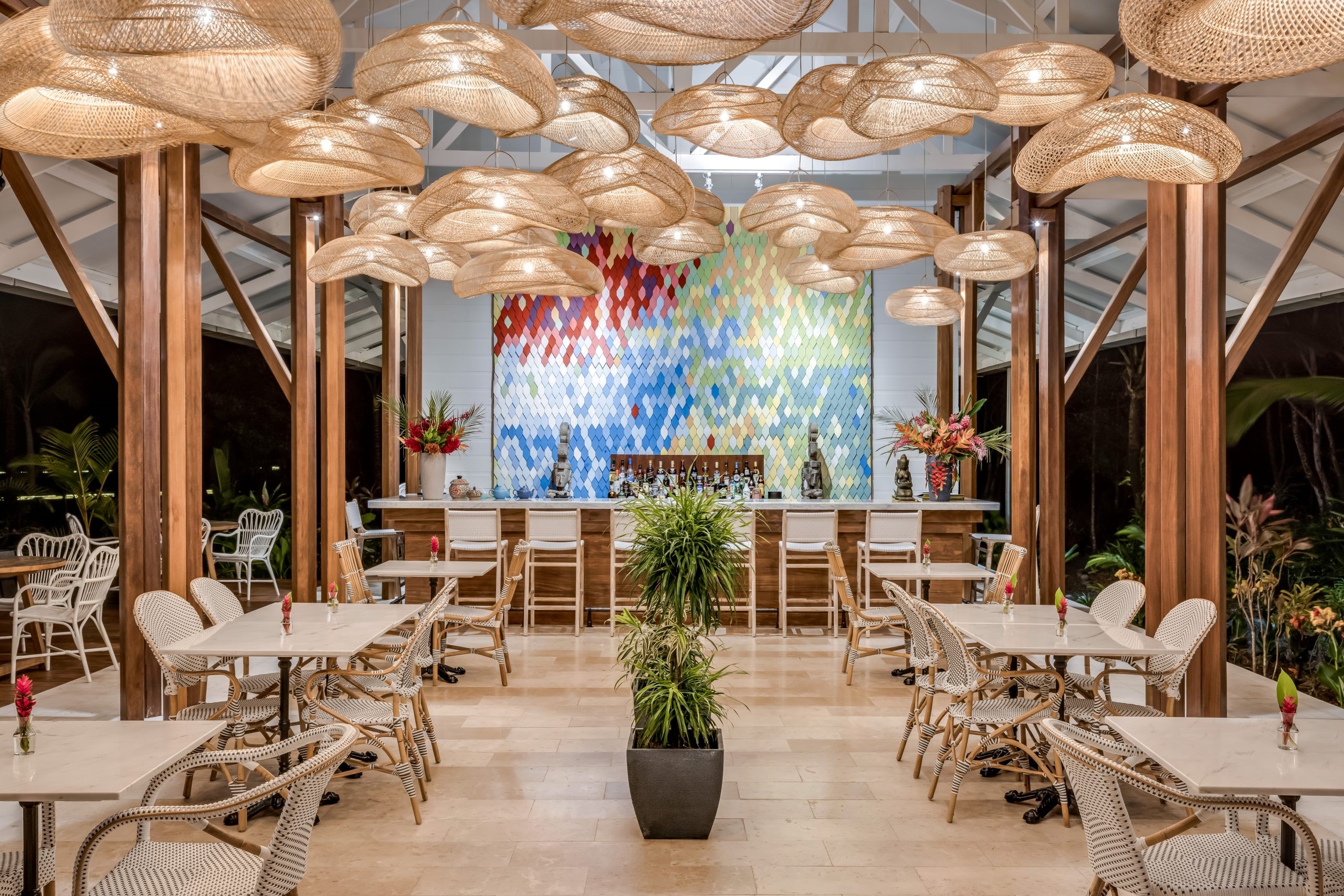 La experiencia culinaria en Nayara es una oda a los sabores del Caribe. En el restaurante Elefante, la fusión de cocina afroantillana y caribeña cobra vida en platos diseñados para sorprender y deleitar, en un ambiente donde la naturaleza no es solo decoración: tiburones juveniles y peces tropicales nadan junto a tu mesa, añadiendo una dosis de aventura a cada bocado. Es el tipo de restaurante donde cada cena se convierte en una ocasión memorable, perfecta tanto para una velada romántica como para una experiencia única en familia.